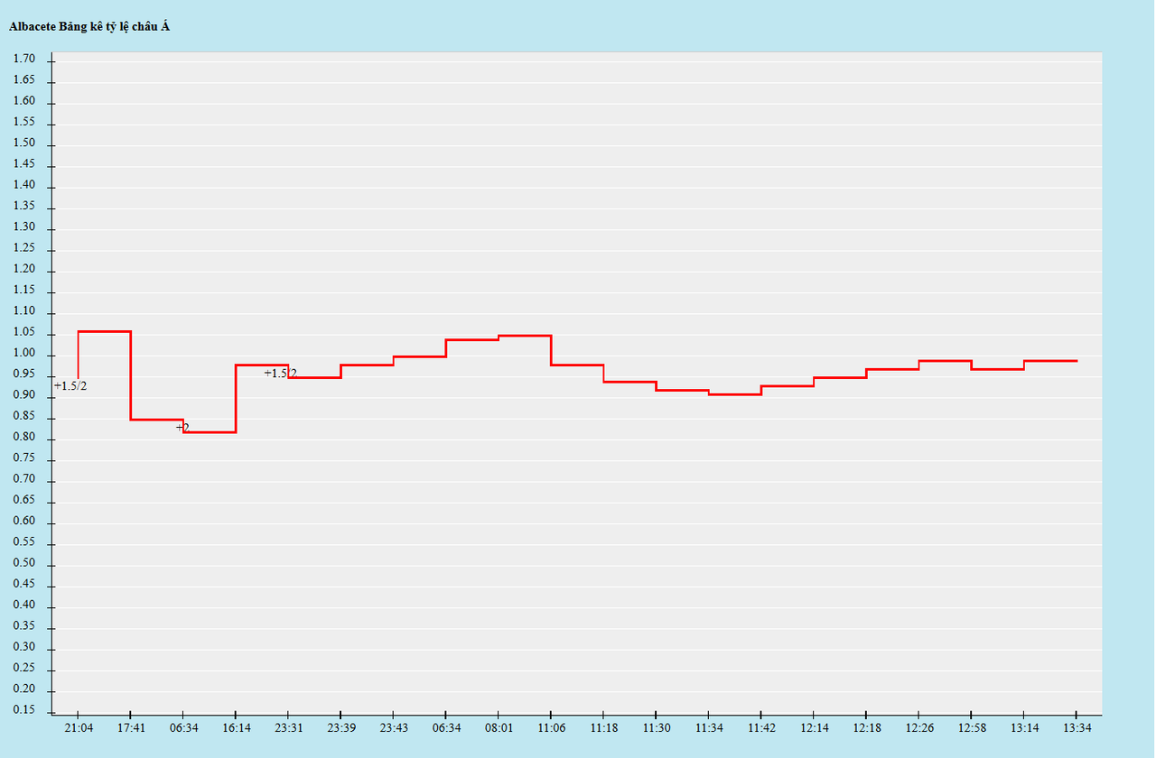 Kèo đấu này đã được niêm yết từ trước khi Real Madrid bước vào loạt trận Siêu Cúp Tây Ban Nha. Thời điểm đầu, Los Blancos được đánh giá chấp Albacete 1.75 bàn. Sau đó, tỷ lệ chấp được đẩy lên chạm ngưỡng 2 bàn thế nhưng với trận thua của Los Blancos trước Barcelona, mức kèo chấp được trả về 1.75 và giữ ổn định đến sát giờ bóng lăn mà không có thêm bất kỳ biến động nào.